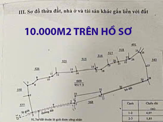 + Diện tích: gần 1 hecta (10.757 m²-2 sổ), thuộc đất nông nghiệp đã chuyển mục đích sản xuất nông nghiệp công nghệ cao