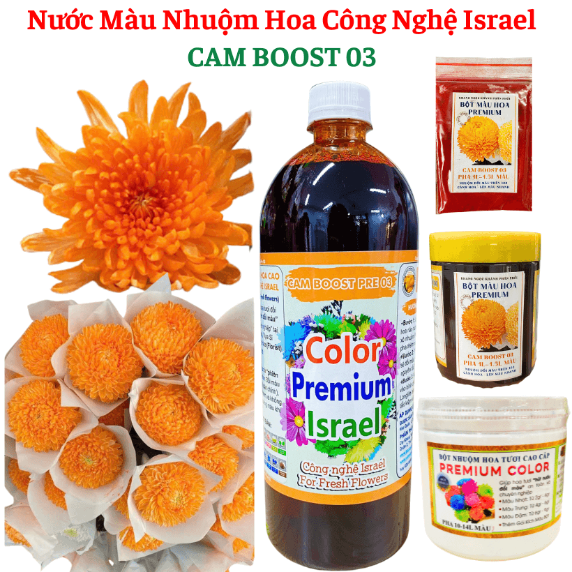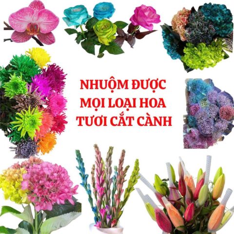 20 màu thuốc nhuộm hoa tươi cao cấp được sử dụng phổ biến trong ngành hoa cắt cành nghệ thuật, giúp tạo màu sắc độc đáo cho hoa hồng, hoa cúc, cẩm chướng, baby, v.v. gồm: Vàng Chanh, vàng đồng, cam boost, cam lữa, hồng sen, hồng khối, xanh cốm, xanh lá, đỏ tươi, đỏ đâm boost, tím puple ....