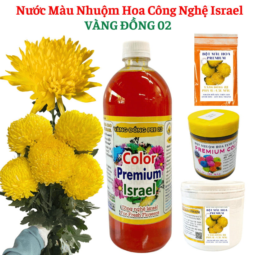 + Nếu bạn thường xuyên nhuộm hoa cúc trắng thành hoa cúc vàng, hẳn đã từng băn khoăn “Nên chọn màu vàng nào cho “chuẩn”. Nếu màu hoa cúc nhuộm Màu Vàng chanh Pre 01 – Sáng tươi, trong trẻo, tạo cảm giác trẻ trung, vui vẻ, giống như ánh nắng ban mai thì Màu Vàng Đồng Pre 02 – lại mang nét truyền thống, gần giủ và trang nghiêm ở cửa chùa (giống màu vàng thật tự nhiên đến 99%)