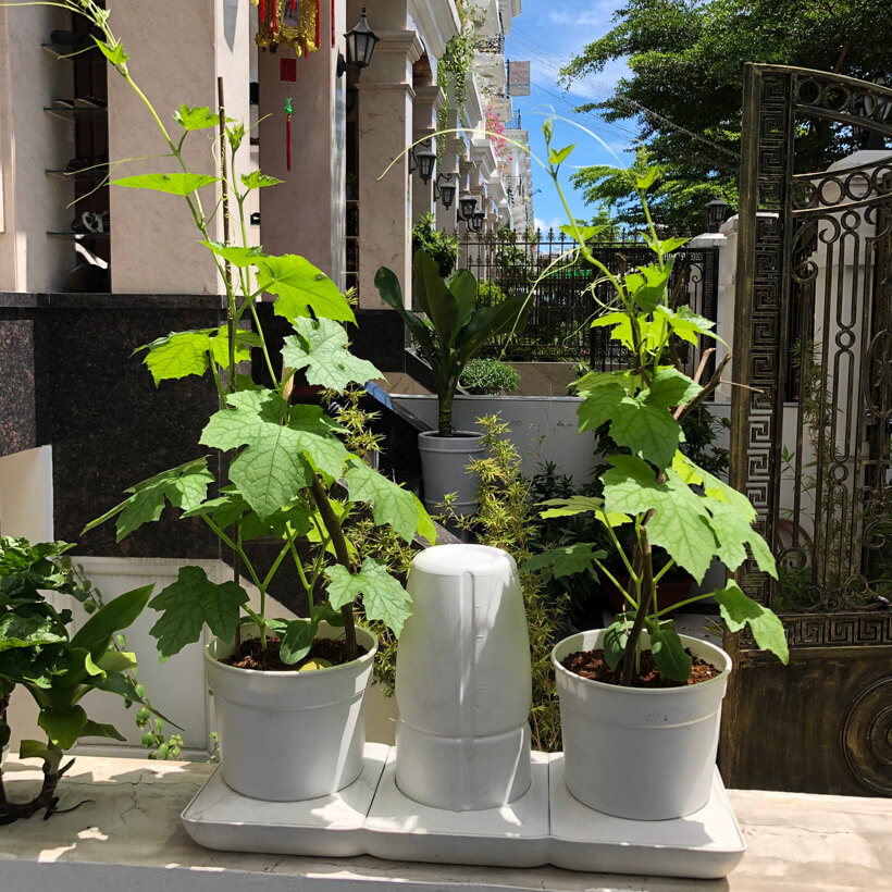 Chậu trồng rau tự dưỡng Basic UNO trồng cây Bí Xanh dây leo giàn là một quyết định đúng đắn và phù hợp. Dành cho người yêu rau sạch nhưng không có thời gian trồng rau, chăm sóc rau và tưới nước cho rau
