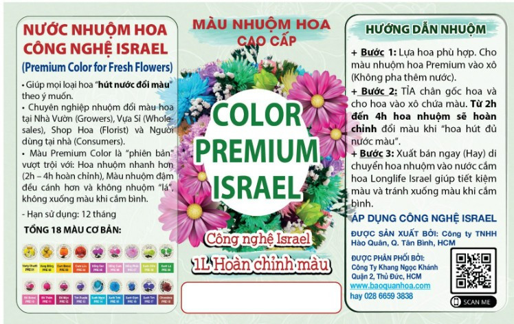 គួរ អនុវត្ត តាម ការណែនាំ សម្រាប់ ប្រើប្រាស់ និង រក ប្រភព ទឹក ស្អាត ដើម្បី លាយ ជាមួយ នឹង ពណ៌ សម្បុរ បញ្ចៀស ផ្កា ពី ការ កាប់ ជ័រ ដោយសារ ប្រភព ទឹក មាន សំណល់ បាក់តេរី …. ប្រព័ន្ធធារាសាស្ត្រ Floral dye របស់អ៊ីស្រាអែល មាននៅក្នុង 12 ពណ៌គ្រឹះ ហើយអតិថិជនអាចជ្រើសរើសពណ៌ជាពណ៌ AS THEY LIKE ដោយមិនចាំបាច់ប្ដូរតម្លៃ