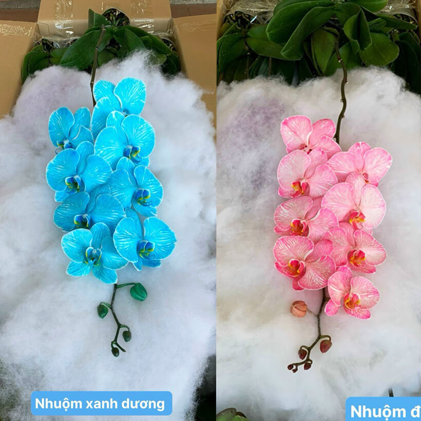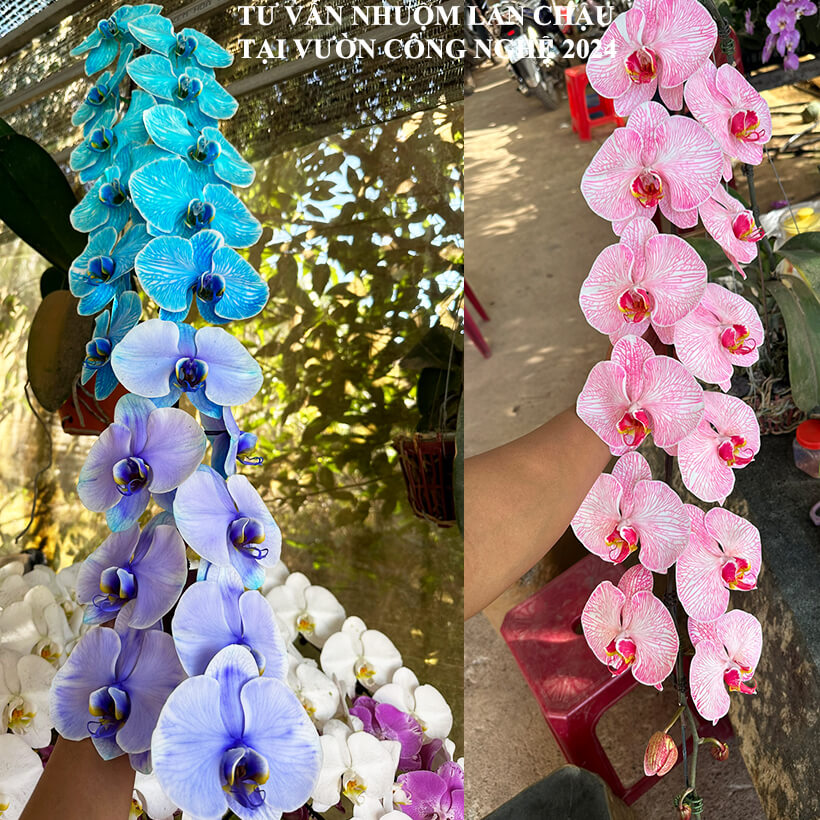 Những cây lan này khi nở hoa sẽ có màu sắc độc đáo như xanh dương, tím đậm, hoặc hồng rực rỡ—những màu sắc mà lan hồ điệp tự nhiên không có. Tuy nhiên, khi cây ra hoa trở lại ở lần sau, hoa thường sẽ trở về màu trắng hoặc màu tự nhiên ban đầu, vì thuốc nhuộm chỉ ảnh hưởng đến hoa hiện tại.