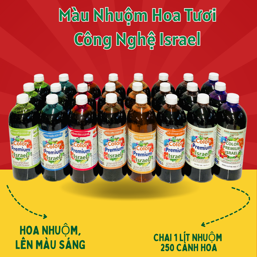 Chế phẩm nước nhuộm màu hoa tươi chuyên nghiệp được sản xuất theo công nghệ tiên tiến từ Israel, giúp florist dễ dàng thay đổi màu sắc của hoa cắt cành theo ý muốn. Thuốc nước nhuộm hoa dạng pha sẵn hoàn chỉnh, cho phép hoa hút màu tự nhiên qua thân hoa và tạo ra những màu sắc đẹp tự nhiên
