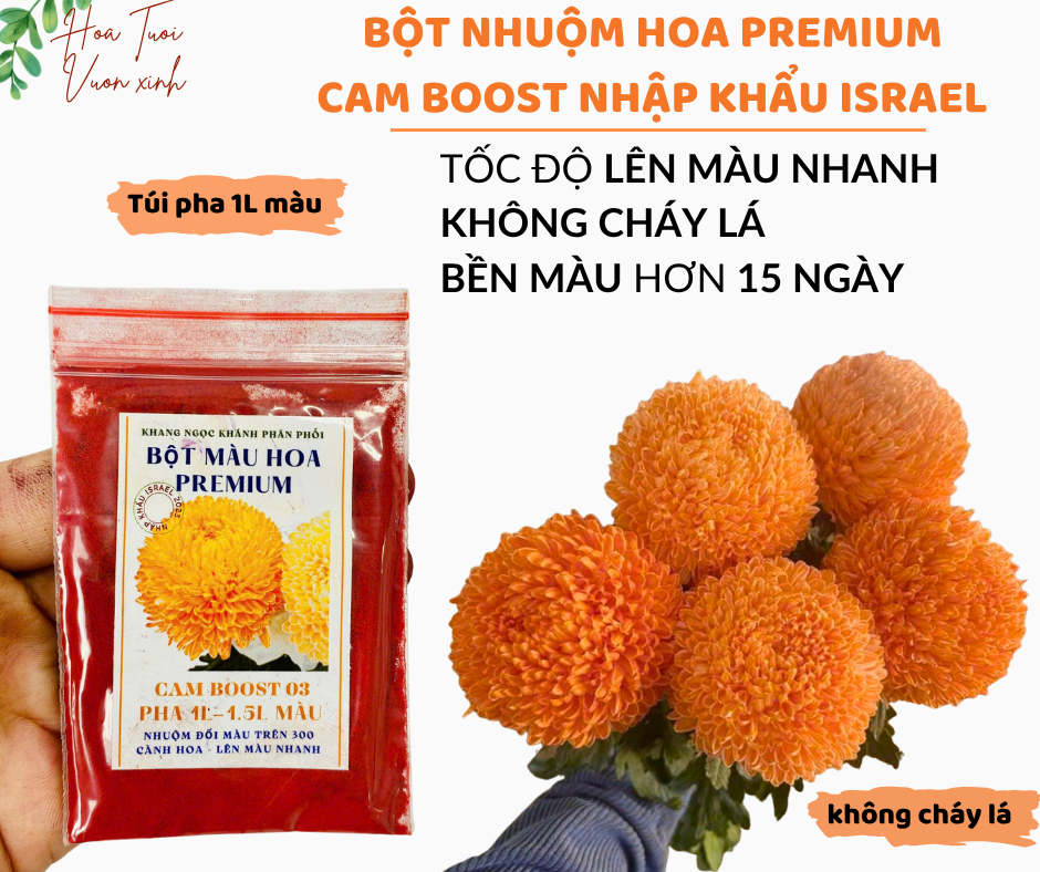 4. Bột nhuộm màu hoa tươi Premium Color là giải pháp lý tưởng cho florist, shop hoa và công ty trang trí sự kiện, giúp tạo ra những màu hoa độc đáo mà vẫn giữ được độ tươi và chất lượng của hoa.