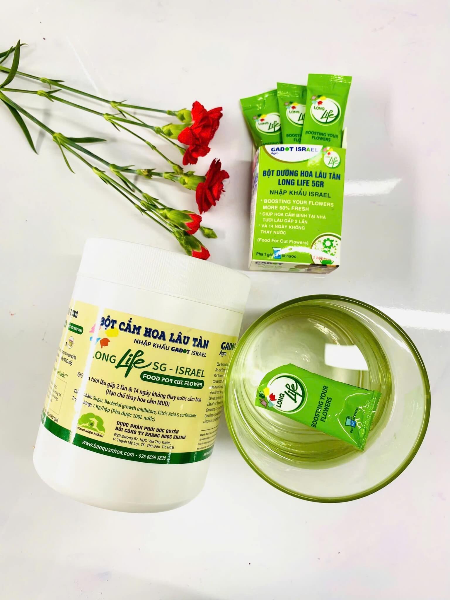 THUỐC BỘT DƯỠNG HOA TƯƠI LONGLIFE SG GIÚP XỐP CẮM HOA TƯƠI LÂU VÀ HẠN CHẾ THAY HOA ĐỊNH KỲ (HŨ 500GR PHA 50L NƯỚC CẮM HOA)
