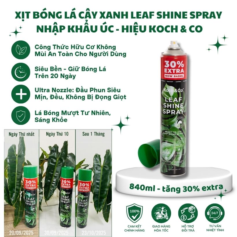 CHAI XỊT BÓNG LÁ ÚC LEAFSHINE SPRAY 840ML (EXTRA 30%) HIỆU KOCH & CO GIÚP LÀM SẠCH LÁ Cho Hoa Lan & Cây Cảnh