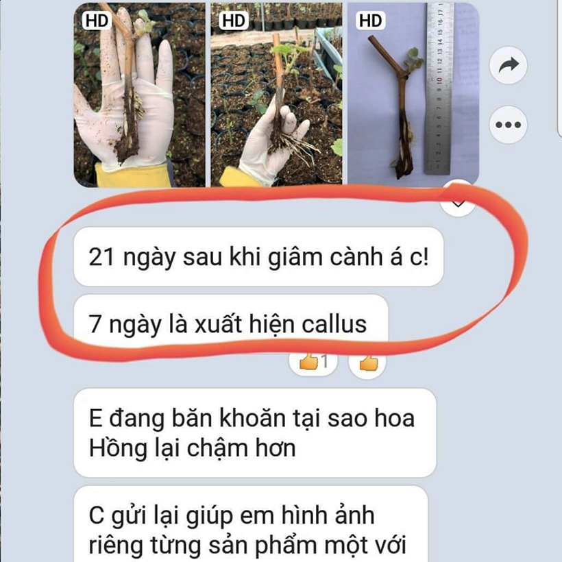 + Khác hàng của chúng tôi là một nữ kỹ sư nông học có tâm huyết vời nghề nông và muốn nghiên cứu thực tế trong nhân giống Nho Nhật tại các tỉnh phía Bắc. Sau nhiều lần thử nhiệm nhân giống theo quy trình bình thường và sử dụng nhiều loại thuốc kích rễ trên thị trường, cô kỹ sư quyết định chọn loại sản phẩm bột tạo rễ tốt nhất nhập khẩu từ đất nước Israel nổi tiếng trên thế giới về nông nhiệp