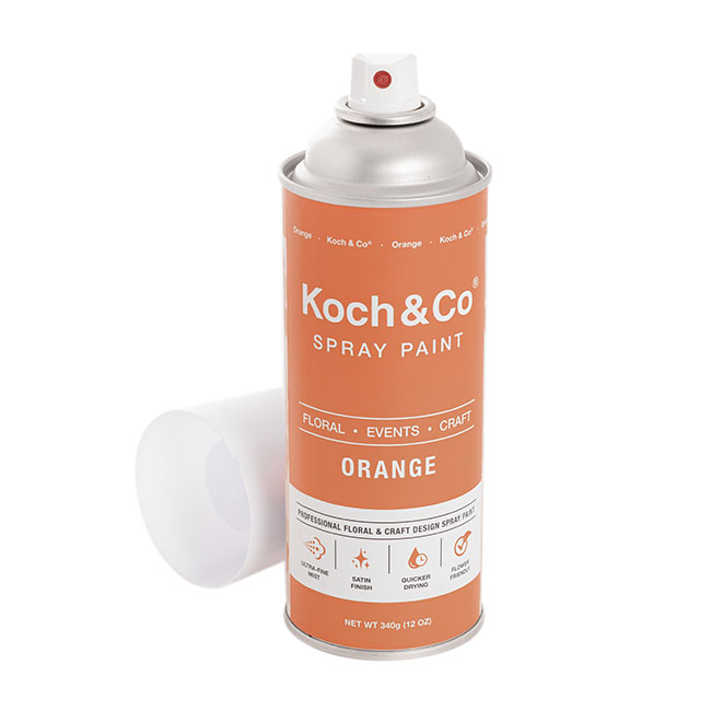 Koch & Co’s Professional Floral and Craft Design Spray Paint in Orange harnesses the latest innovations in acrylic spray paint. This range has all the benefits of modern spray paints with a specialised gentle formula.