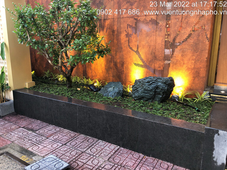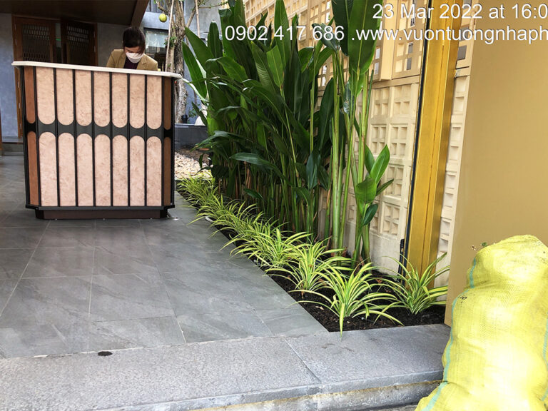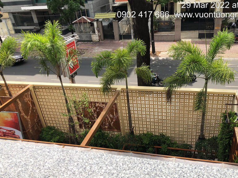 Lần này, chúng tôi không thi công Tường Cây Đứng Áp Tường mang phong cách Châu Âu là vị thế chủ đạo, là điểm mạnh và tự tin nhất mà chúng tôi có được MÀ LÀ thi công 4 Cây Cau Đuôi Chồn cao 6M (cả cây + thi công + chăm sóc bảo hành và tưới  nước), ngoài ra còn đắp đồi trồng cỏ, trồng viền ban công, trồng bồn, trồng chậu … trồng những cây theo thiết kế được đưa ra của công ty thiết kế