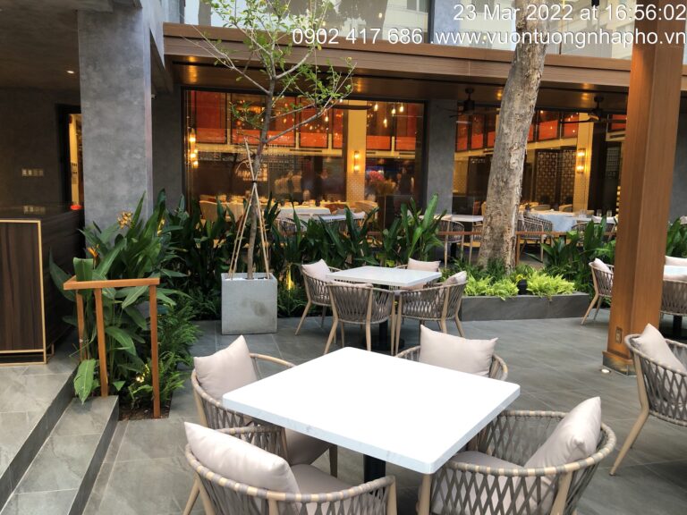 Đó là tựa đề và ít nội dung “nổi bậc” để mô tả những mảng xanh hay những cây xanh xung quanh quanh nhà hàng. Chúng tôi, công ty Khang Ngọc Khánh có một phần đóng góp nhỏ về cây xanh cho nhà hàng nên cũng xin được mô tả thêm chủ đề liên quan đến cây xanh, cảnh quan xanh sân vườn gồm Tầng Trệt (mặt trước, bên trong) và Tầng 1 (lầu 1):