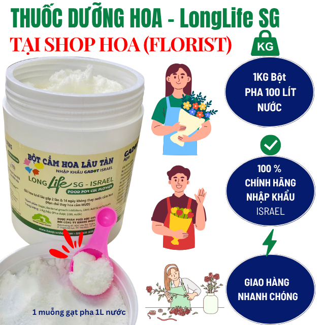 THUỐC BỘT CẮM HOA TƯƠI LÂU TẠI SHOP HOA FLORIST VÀ HOA SỰ KIỆN TIỆC CƯỚI HIỆU LONGLIFE SG 500GR Thuốc bột cắm hoa tươi Longlife SG (Hũ 500gr pha 50L nước cắm hoa) nhập khẩu Gadot Israel giúp cho hoa cắm MUD tươi gấp 2 lần và hạn chế thay hoa định kỳ. Thuốc […]