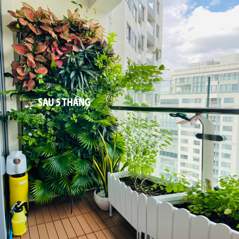 Đây cũng là mô hình tưới tự động cây ban công vườn tường đứng Bồ Đào Nha tại nhà anh Công được thi công vào tháng 2/2021 với ban công không có vòi cấp nước