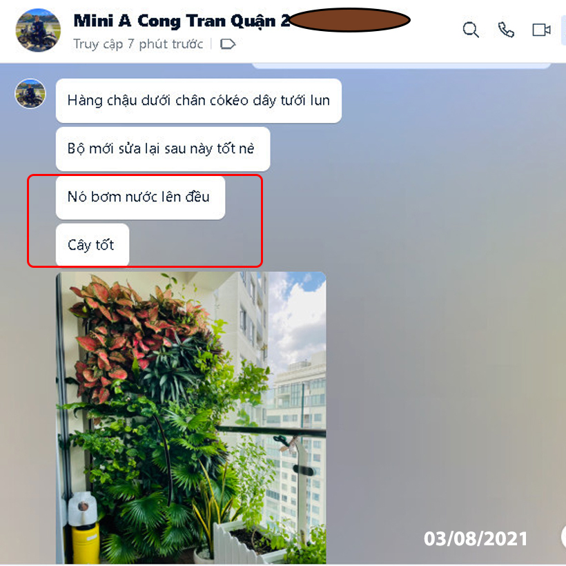 Và đánh giá của anh về chất lượng cây trồng cũng như tiết kiệm công chăm sóc hơn Bán Tự Động (lần trước) đã lắp đặt cho anh 2020