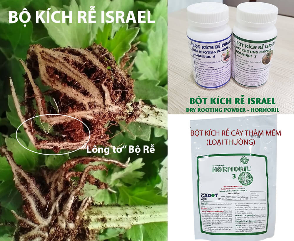 -Tùy vào loại cây thân gỗ hay cây thân mềm để chọn loại bột kích rễ Israel phù hợp, đúng thành phần I.B.A để không gây ra “cháy rễ do kích mạnh rễ” và nên dùng loại có trị nấm để hạn chế nấm bệnh