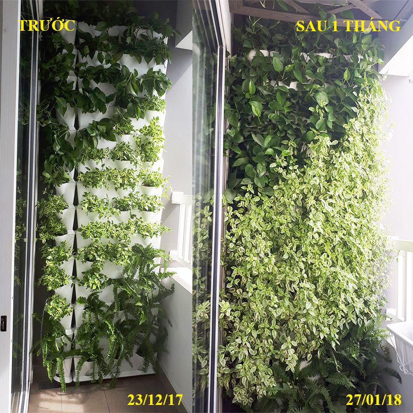 + Sau 1 tháng cây ban công phát triển tốt, xanh mát, đều lá và quan trọng tiết kiệm thời gian tưới và chăm sóc. Sạch sẽ và sang trọng xanh mát cả ban công. Anh chủ nhà khá hài lòng