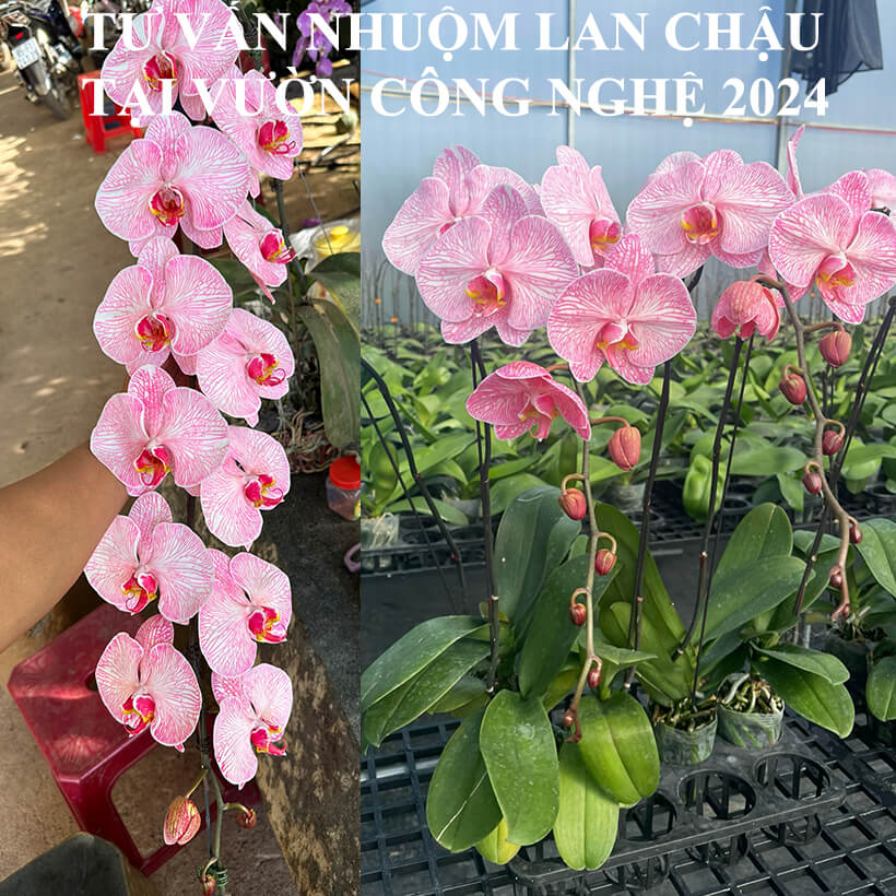 Đây là công nghệ nhuộm mới lạ giúp hoa lan hồ điệp lên màu tự nhiên và mang lại giá trị thẩm mỹ cao cho lan chậu bán ra thị trường.